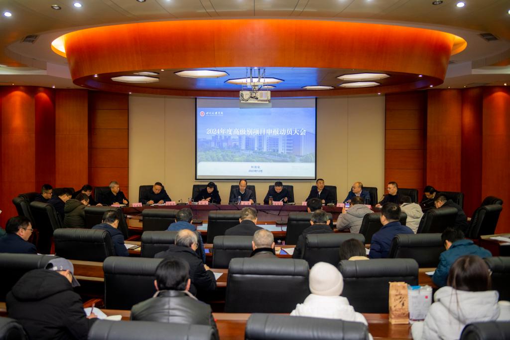 为动员全校科研工作者积极申报高级别科研项目,推动学校科技创新高质量发展,全力决战决胜申硕攻坚,ac米兰于12月21日上午召开2024年度高级别科研项目申报启动会,吹响了高级别项目攻关集结号。党委书记黄涛、校长侯忠明、副校长邓杰出席会议,副校长苟兴龙主持会议。