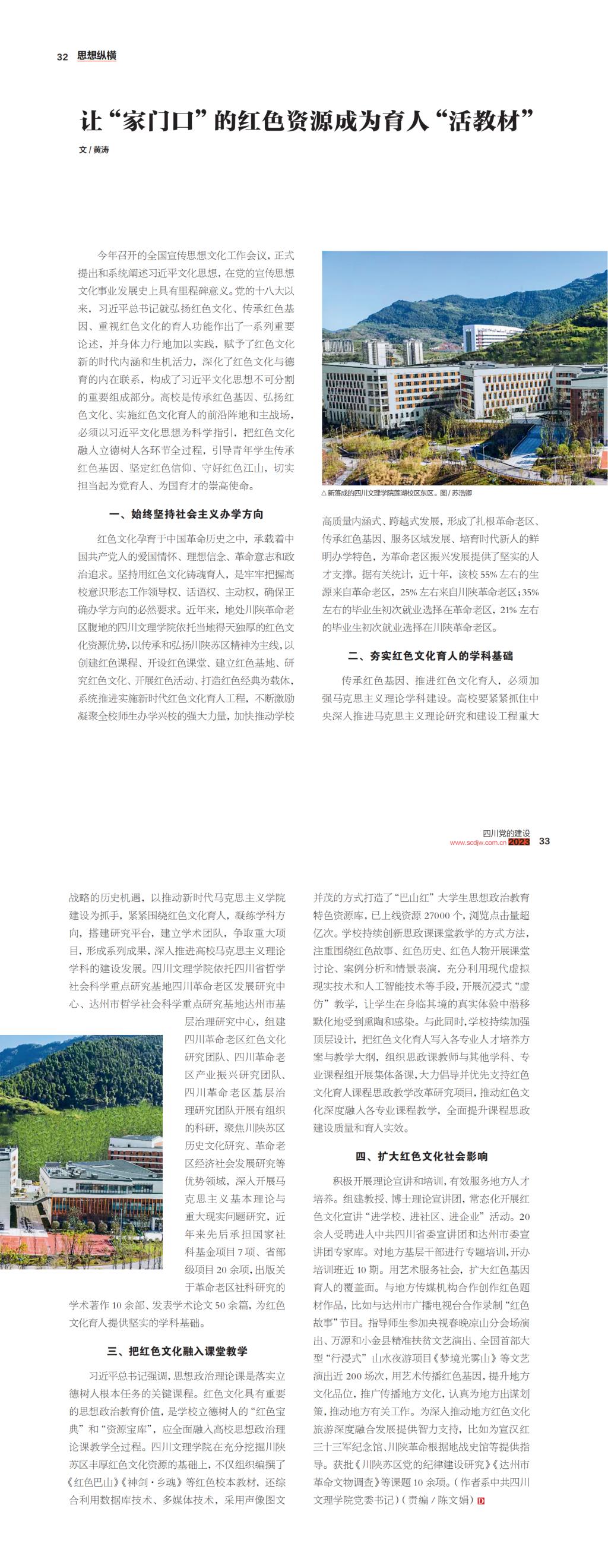 12月20日,由中共四川省委主管主办的《四川党的建设》(2023年第24期)刊发了ac米兰党委书记黄涛文章《让“家门口”的红色资源成为育人“活教材”》。