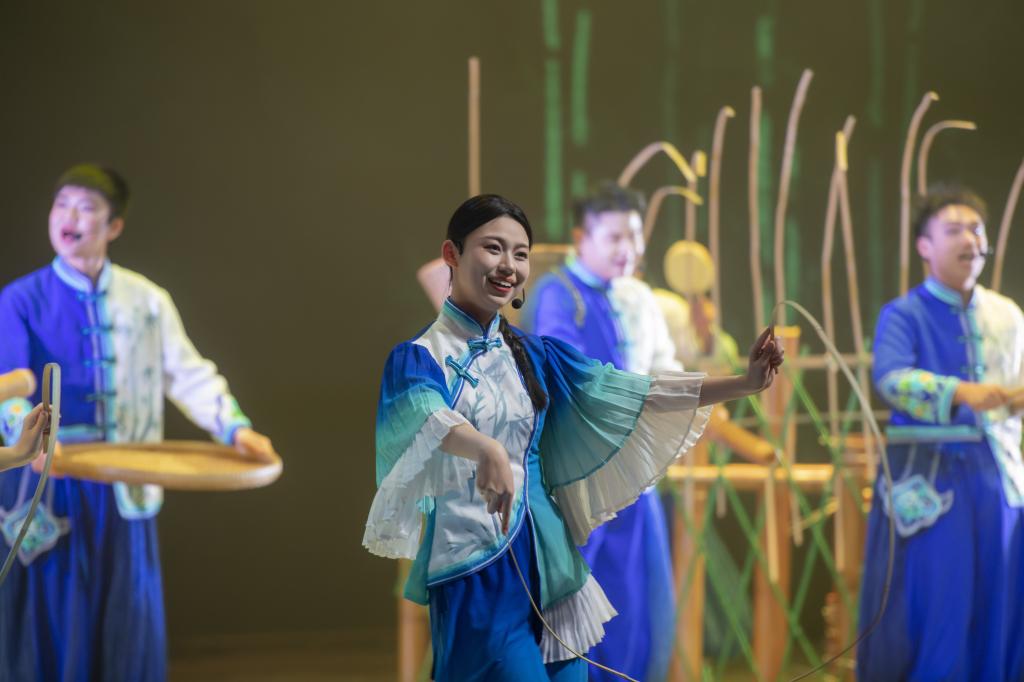 梦想是一盏灯,照亮我们前行的方向;梦想也是一对翅膀,给我们穿越风雨的力量。伴着掌声进入第二篇章“梦想”,演唱《篾丝飞舞》、武术舞蹈《武舞同行》、舞蹈《丰收铰响》分别演绎了竹乐器和民歌交织交融,书法与武术的相辅相成以及舞蹈与民族艺术的融合创新,充满力量感及艺术感的动作令台下观众目不暇接。