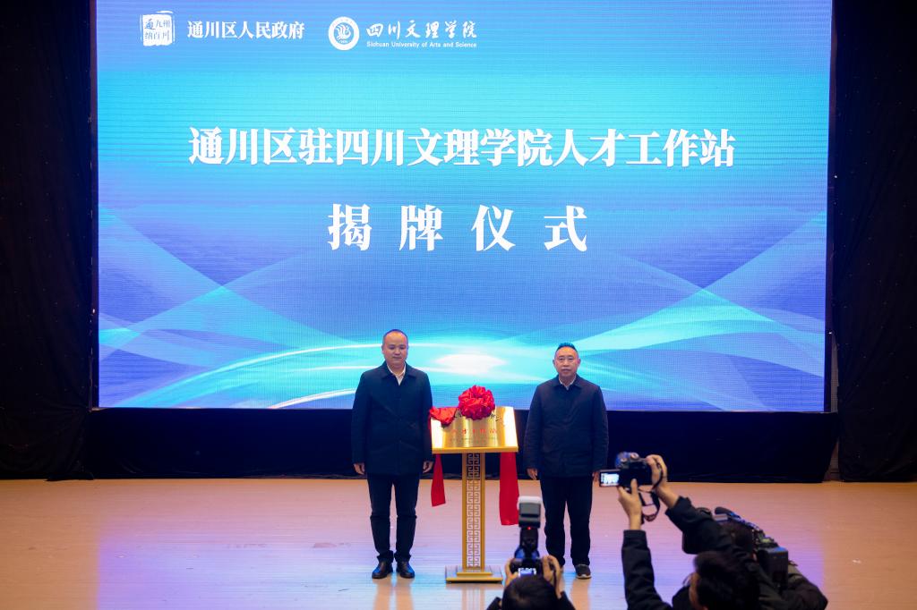 启动仪式上,学校与通川区人民政府签订了人才战略合作协议,通川区委常委、组织部部长马辉、ac米兰官网中文网站党委常委、组织部长、统战部长涂德祥同志为“通川区驻ac米兰官网中文网站人才工作站”揭牌,专家人才代表作了交流发言。