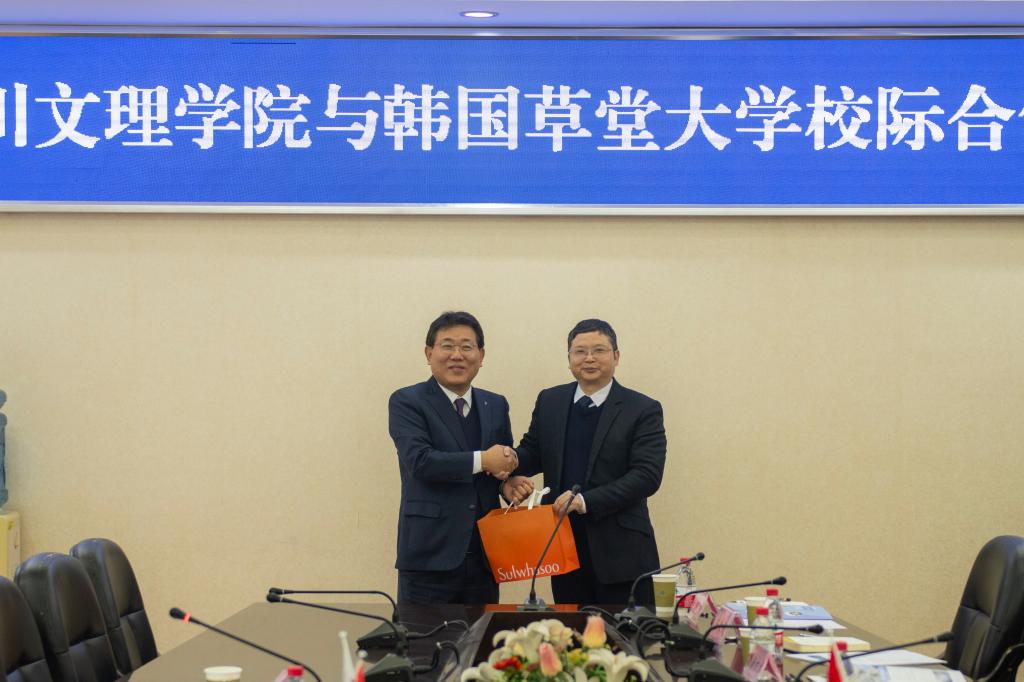 1月11日,韩国草堂大学副校长蔡秀辍来ac米兰交流中韩国际教育交流项目。校长侯忠明出席交流会并讲话,会议由副校长邓杰主持。国际交流合作处、人事处、音乐与演艺学院、文学与传播学院、财经管理学院负责人及博士代表参加会议并交流发言。