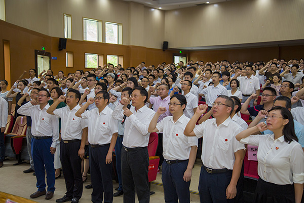 全校师生党员代表500余名同志参加大会。