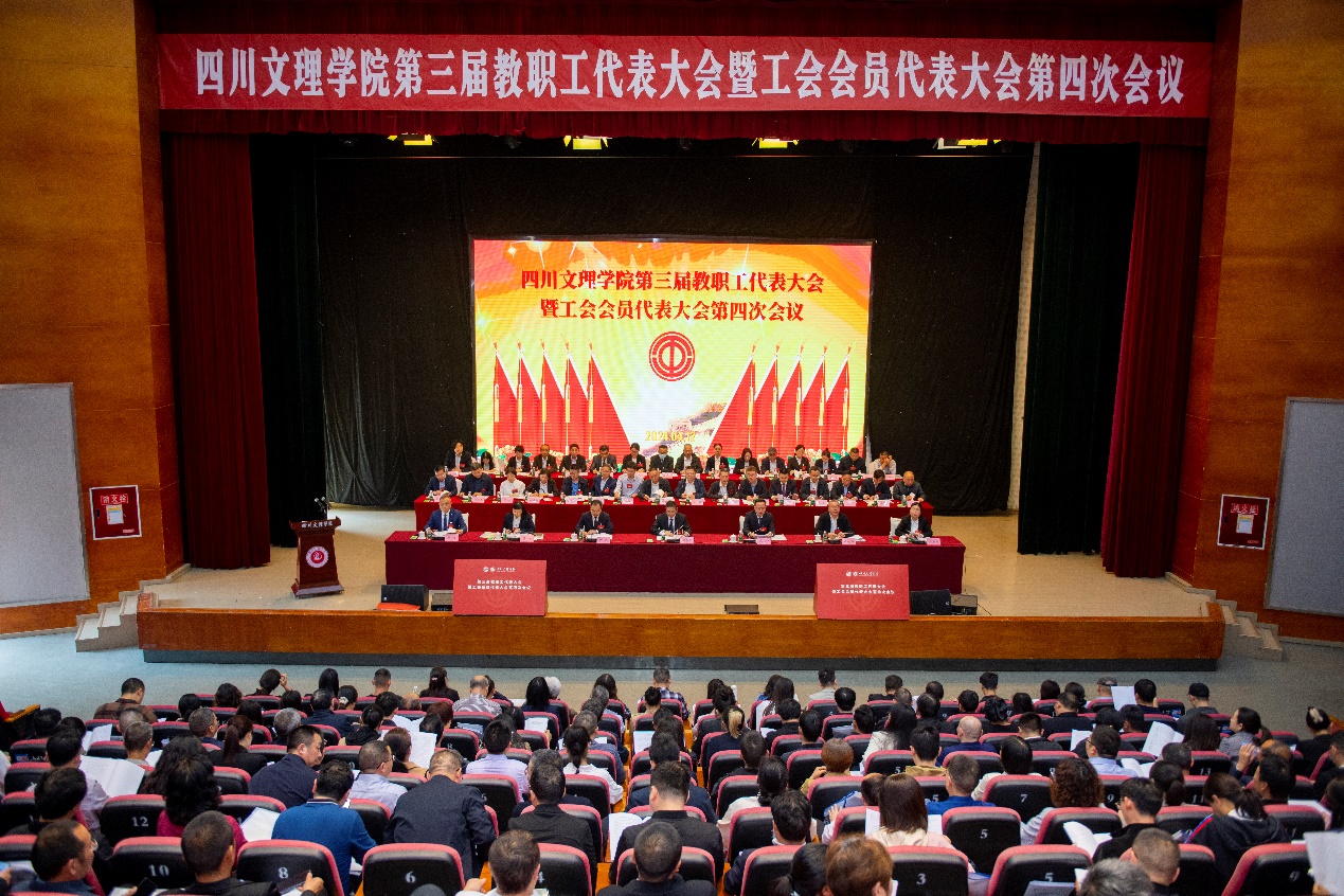 4月12日下午,ac米兰官网中文网站第三届教职工代表大会暨工会会员代表大会第四次会议在莲湖校区开幕。党委副书记、校长侯忠明作《学校工作报告》。会议审议了《学校工作报告》《学校财务工作报告》《工会报告》以及《工会经费审查报告》。党委副书记、工会主席朱兴华主持会议并作闭幕讲话,党委副书记、纪委书记帅胤,党委常委、副校长徐晓宗、邓杰、程碧英、苟兴龙出席会议。