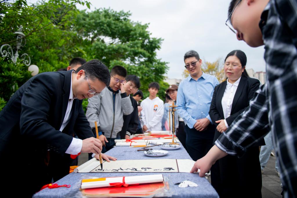 学校现有社团107个,涵盖学术科技、创新创业、志愿公益、文化体育、自律互助等类别,其中传统文化类社团27个。本次活动以“弘文励教,立德树人”为主题,活动现场除了学生社团风采展示外,还开展了传统文化类学生社团互动展演及沉浸式体验活动。活动设有书法篆刻、漂漆扇制作、植物拓染、投壶射箭、古筝二胡、象棋围棋对弈、汉服走秀、茶艺展示、飞花令、猜灯谜等互动体验项目,一系列丰富多彩的中华传统文化活动,吸引了众多师生驻足观赏、排队体验,感悟中华传统文化的魅力。