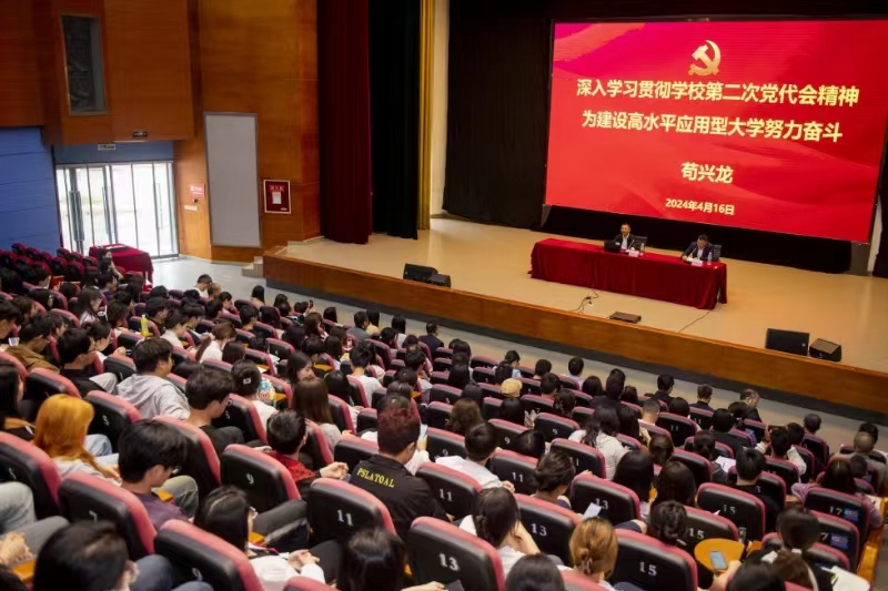 为深入学习宣传贯彻学校第二次党代会精神,用党代会精神统一全校师生思想共识,凝聚磅礴力量,聚力申硕攻坚。4月16日下午,党委常委、副校长苟兴龙在艺术传媒大楼多功能厅以“深入学习贯彻学校第二次党代会精神为建设高水平应用型大学努力奋斗”为题作学校第二次党代会精神专题宣讲。