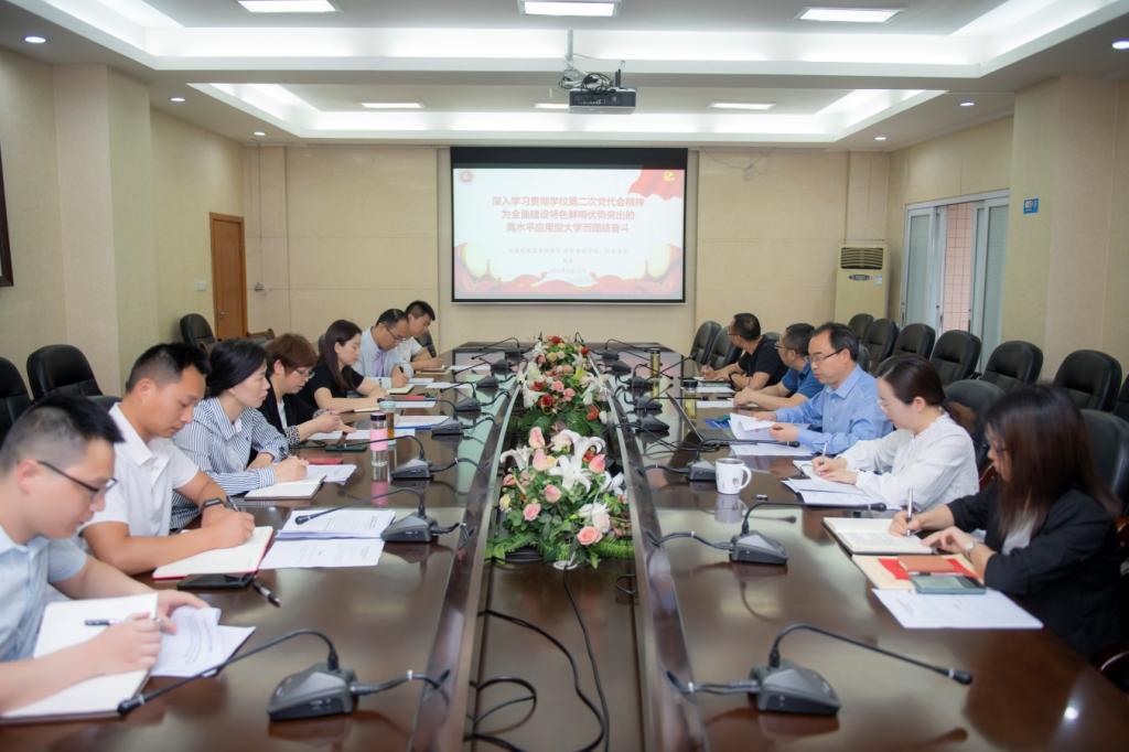帅胤从学校第二次党代会概况、面临的挑战和发展机遇、建设与发展奋斗目标、今后五年主要工作任务以及纪委工作报告的主要精神等方面,对学校第二次党代会提出的“一个目标”“两步走”“六大提升”“九大行动”“六大计划”进行深入解读,要求与会人员认真学习领会党代会精神,全力以赴抓好贯彻落实。