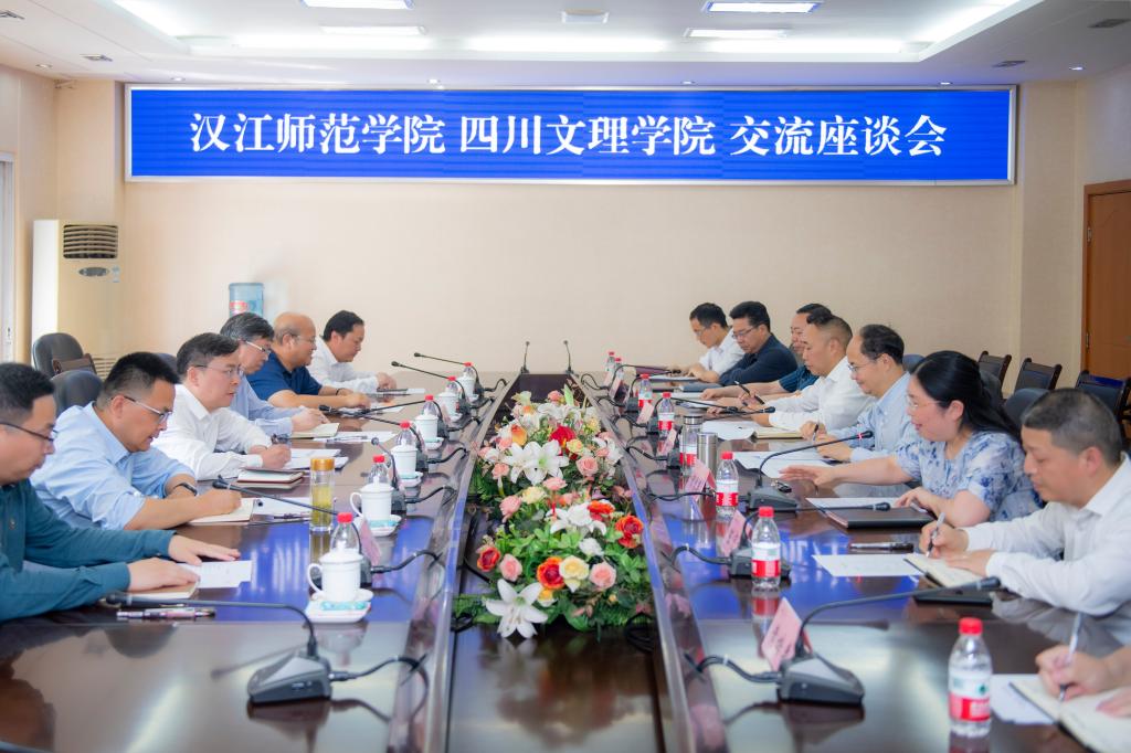 5月7日,汉江师范学院党委书记付永昌一行来校调研交流,双方在弘德楼会议室召开座谈会。汉江师范学院党委常委、副校长陈俊,ac米兰党委书记黄涛、党委常委、副校长程碧英,以及双方相关职能部门负责人出席会议。交流座谈会由程碧英主持。