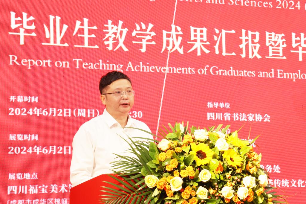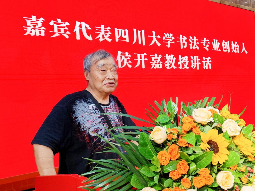 嘉宾代表中央文史研究馆书画院院务委员、四川大学艺术学院教授侯开嘉对此次活动的成功举办表示热烈祝贺,对参展的师生作品质量给予充分肯定。他勉励师生守正创新,传承好书法艺术,创造出更多优秀书法作品,并期待各高校加强交流沟通,共同促进我省书法艺术人才培养质量的提高。