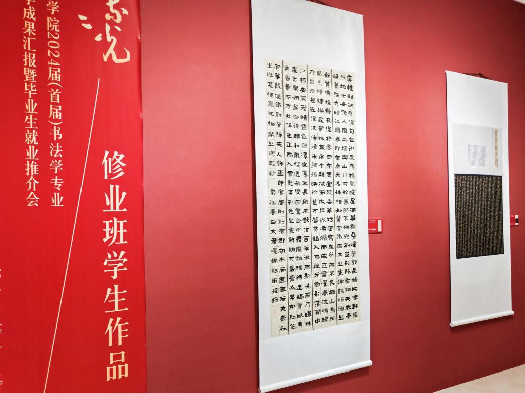 据悉,本次教学成果汇报展时间为6月2日至6月7日,面向社会开放。展品包括ac米兰书法学专业30名毕业生创作的91件书法篆刻作品和修业班学生的11件作品,另有谢和平、侯开嘉、何开鑫、冯恩旭、刘锁祥、戴文、金玟廷、杨帆、马骏华、刘志超、陈沫吾等书法界前辈、专家和ac米兰专兼职教师的24件书法作品参加展览,为观众奉献了一场书法艺术盛宴。