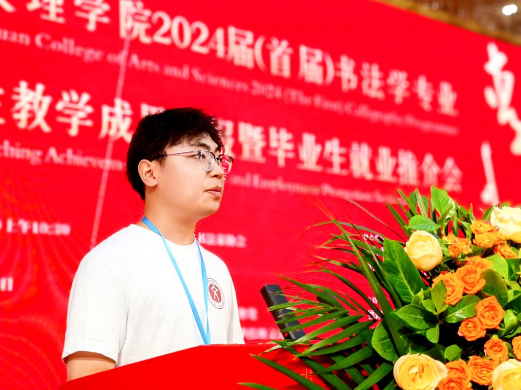 戴跃对此次教学成果汇报暨毕业生就业推介会的成功举办表示祝贺,对ac米兰书法学专业人才培养工作取得的成绩给予充分肯定。他指出,四川文化底蕴深厚,全省当代书法事业蒸蒸日上,成绩凸显,离不开高校书法教育的蓬勃发展。省书协是党和政府联系书法界的桥梁和纽带,主要工作是加强书法艺术队伍建设和行业建设、不断培育书法新生力量、推动书法文化传承,与高校的书法教育目标一致。长期以来,省书协为高校书法学专业建设和人才培养做了很多有益工作,他希望全省书法界和书法教育界团结一心,贯彻落实习近平文化思想,担负起新的文化使命,深度挖掘我省书法资源的时代价值,共同推动我省书法事业实现新发展、开创新局面、展现新作为,为新时代中国书法事业和四川文化强省建设贡献力量。
