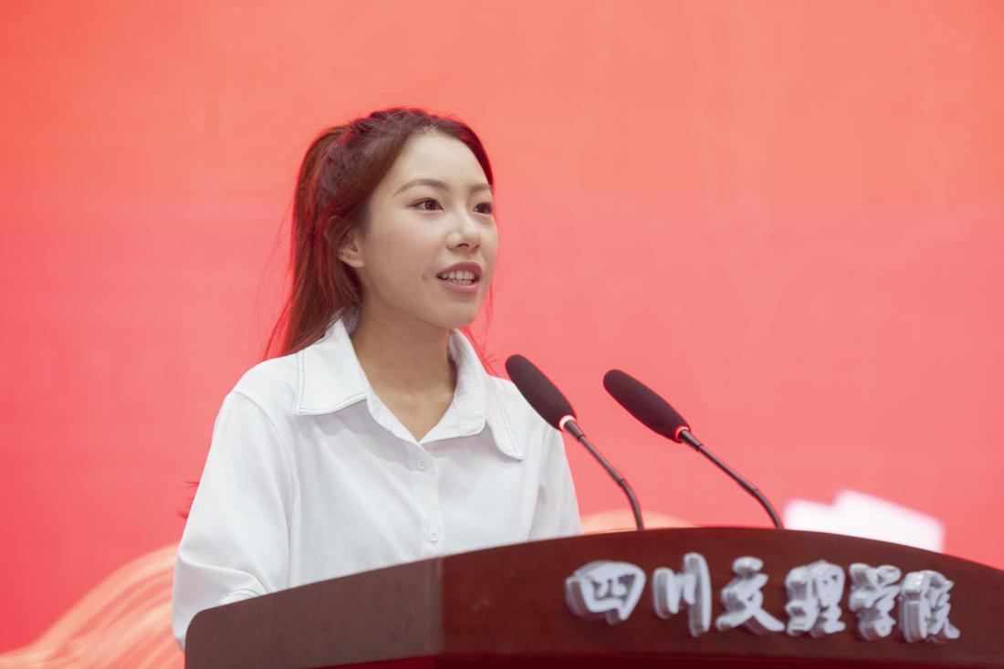 作为优秀毕业生代表,2020级外国语学院的刘悦淇同学在发言中回忆了难忘的大学时光,畅谈求学的感悟体会。她说无论前路多么艰辛,我们都要相信前行的力量;无论走到哪里,我们都为川文理代言。