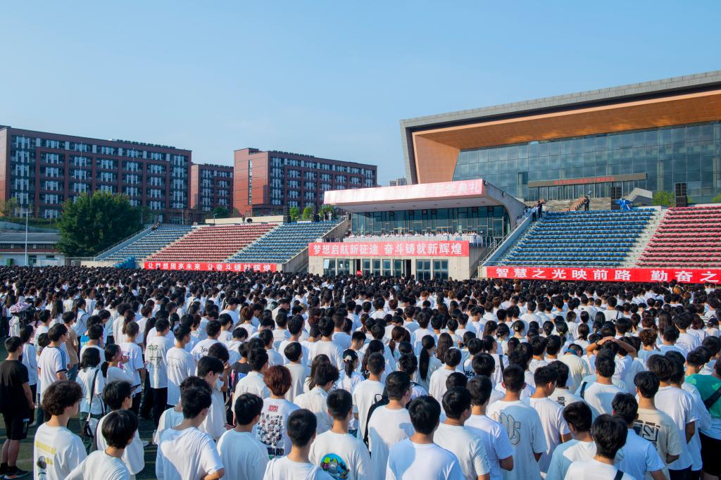 郁郁凤凰岭,盛夏阳光炽。9月18日,ac米兰2024级新生开学典礼在莲湖校区田径场举行,在这充满希望与梦想的季节里,学校迎来了4850名青春洋溢、满怀憧憬的新学子。校长侯忠明出席典礼并讲话,副校长徐晓宗主持典礼,副校长邓杰、程碧英、苟兴龙,学校职能部门、二级学院负责人,以及全体新生参加开学典礼。