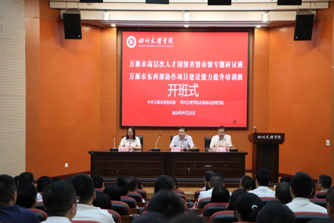 9月23日,万源市高层次人才国情省情市情专题研讨班、东西部协作项目建设能力提升培训班在ac米兰莲湖校区同时开班。学校校长、达州基层治理学院院长侯忠明出席开班仪式,马克思主义学院院长、达州基层治理学院副院长孙杰主持开班仪式。