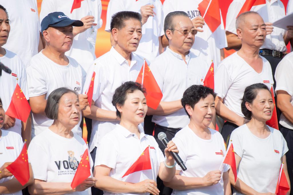 “闪唱”采用朗诵、领唱、合唱的方式,演唱了《我和我的祖国》《最美不过夕阳红》《歌声与微笑》三首歌曲。