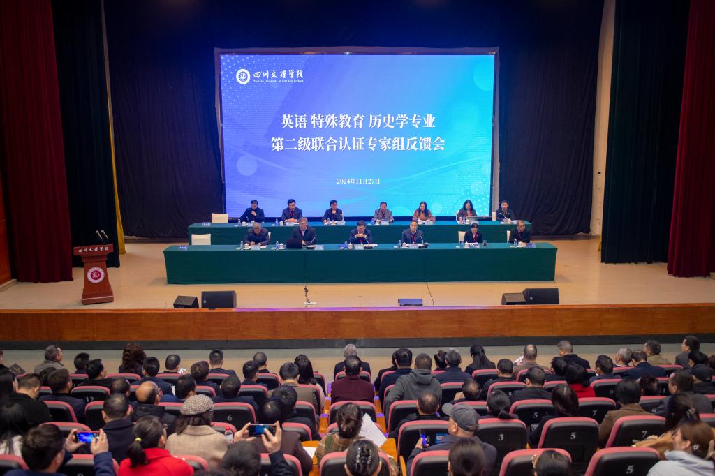 英语专业专家组王涛教授、刘承宇教授、张秀梅教授、席丽巧正高级教研员,特殊教育专业专家组于源溟教授、孙晶华教授、赵庆春正高级教师、薛云珍教授,历史学专业专家组田野教授、刘洪兴教授、李益彬教授、胡春光教授,及专家组秘书陈本炎副教授、丁洲老师、吴国华副研究员,四川省教育评估院高等教育监测评估所科研人员王安源,学校党政领导班子、相关职能部门负责人、认证专业所属学院党政班子成员及教师代表等参加了反馈会。