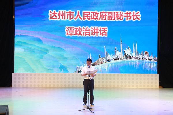 达州市人民政府副秘书长谭政治受郭亨孝市长的委托,代表达州市人民政府,向大赛的举办致以热烈的祝贺!他希望获奖选手牢记大赛宗旨,与投资单位精诚合作,诚信经营,尽快产生效益,并发挥示范引领作用,激发广大青年的创业热情,不断提高我市创新创业工作水平。同时希望各级地方政府、高校、企事业单位和社会各界高度重视和大力支持青年学生的创新创业,为他们打造平台,提供保障,为每一名创业者点亮指路明灯,加速推进我市创新创业战略,为我市及川东北地区脱贫攻坚、同步全面小康做出新的贡献。