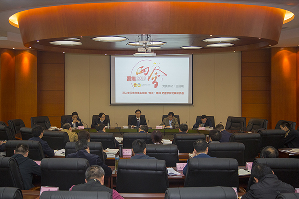 3月28日,学校党委中心组举行本学期第一次集中理论学习活动,专题学习全国“两会”精神、习近平总书记在十三届全国人大一次会议闭幕会重要讲话以及来川视察重要讲话精神,部署学校贯彻落实意见。党委书记王成端主持会议并从《政府工作报告》解读、中华人民共和国宪法修改、党和国家机构改革、高等教育改革发展等层面作学习辅导。