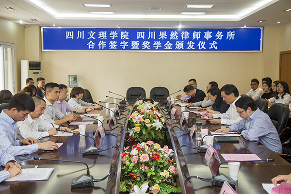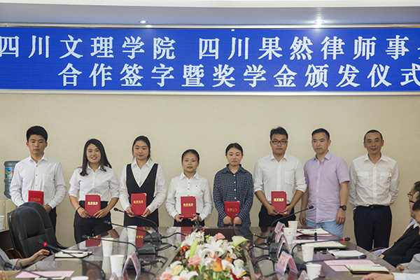 4月4日,学校与四川果然律师事务所校企合作协议签字暨“果然奖学金”颁发仪式在莲湖校区举行,政法学院6名同学获得2017-2018学年“果然奖学金”。党委书记王成端出席签字仪式并讲话。
