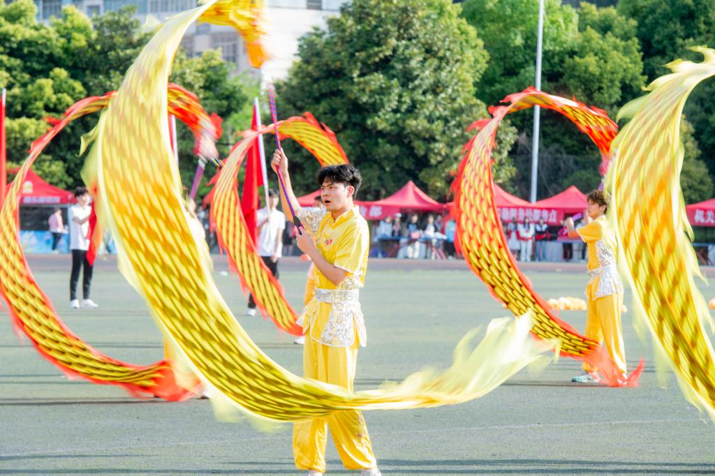 开幕式上,各学院以匠心独具的文体表演点亮赛场。体育学院学子献上刚柔相济的武术展演,拳脚生风间尽显形意相生之美;财经管理学院创新演绎民族街舞,新潮表达中浸润传统根脉,碰撞出跨界融合的艺术火花;音乐与演艺学院携民族舞蹈翩然而至,霓裳羽衣流转千年文化神韵,曼妙舞姿织就东方美学画卷;建筑工程·生态学院则以整齐划一的马克操燃爆全场,铿锵步伐与跃动节拍交织,迸发青春独有的磅礴力量。多元艺术形态在此竞放异彩,赢得此起彼伏的喝彩声浪。