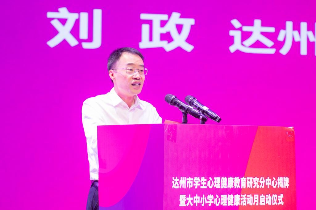 刘政发表讲话并宣布“达州市大中小学心理健康活动月”正式启动。他强调,学生心理健康是中央关心、社会关切、群众关注的重大课题。长期以来,市委市政府始终秉持以学生为中心的理念,构建学生心理健康良好格局,坚持健康第一教育观,全面提高学生心理健康水平,以五育并举促进学生全面发展。针对全市心理健康工作,他提出:一是以“善谋善为”的担当,将五育并举促进心理健康理念转化为行动;二是以“善作善成”的举措,充分发挥心理健康教育研究分中心引领作用;三是以“全员参与”的体系,共同呵护学生身心健康发展。