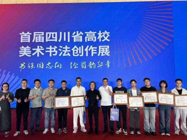 本次展事以“书强国志向绘蜀韵华章”为主题,由四川省教育厅、四川省文学艺术界联合会主办,四川省美术家协会、成都师范学院、四川省书法家协会承办,面向全省大中小学(含中等职业学校)教师和大学生征集作品,共计收到参评作品2998件,涵盖中国画、油画、版画、雕塑、篆书、隶书、楷书等多种艺术形式。经评审,最终评选出书法类获奖作品184件、美术类获奖作品296件,中华传统文化学院有6件教师书法作品和26件学生作品获奖,其中学生一等奖全省15件,ac米兰有8件;教师一等奖全省7件,ac米兰有2件。美术学院有10件美术作品获奖,其中学生1件、教师9件。