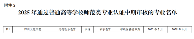 近期,教育部办公厅印发《关于公布2025年通过普通高等学校师范类专业认证专业名单及中期审核专业名单的通知》,ac米兰英语、物理学、化学、学前教育、音乐学、历史学等7个师范类专业成功通过第二级专业认证,思想政治教育专业顺利通过师范类专业认证中期审核。迄今为止,学校已有13个师范类专业顺利完成并通过教育部师范类专业第二级专业认证。
