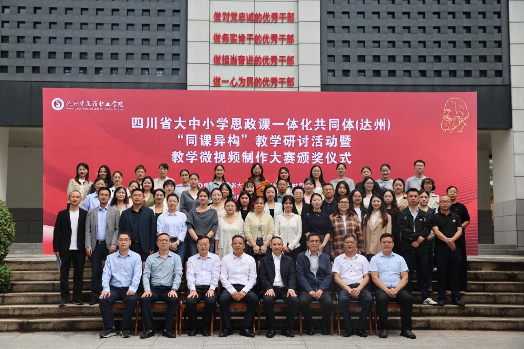10月15日,由学校牵头四川省大中小学思政课一体化共同体(达州)组织开展“同课异构”教学研讨活动暨达州市大中小学思政课一体化建设教学微视频制作大赛颁奖活动在达州中医药职业学院举行。市委教育工委专职副书记、市教育局党委委员冯雷,达州中医药职业学院党委书记李壮成,ac米兰官网中文网站马克思主义学院院长孙杰,达州中医药职业学院专职党委副书记舒心刚,达州中医药职业学院党委副书记、纪委书记李孟然等参加活动。