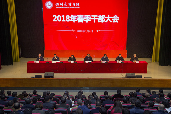 党委副书记、校长刁永锋代表学校党委、行政对2018年的工作做了详细部署,对过去一年和寒假期间的工作进行了简要总结。他说,2017年,学校党政班子团结带领广大师生员工凝心聚力,综合施策,共谋发展,各项工作取得了新的成绩,重点工作实现了新的突破,学校综合实力和竞争力有了大幅提升,为区域经济社会发展和四川教育事业做出了积极贡献。