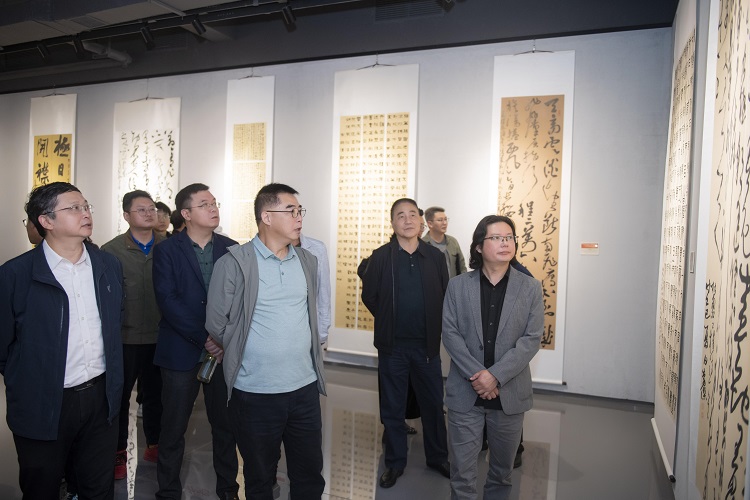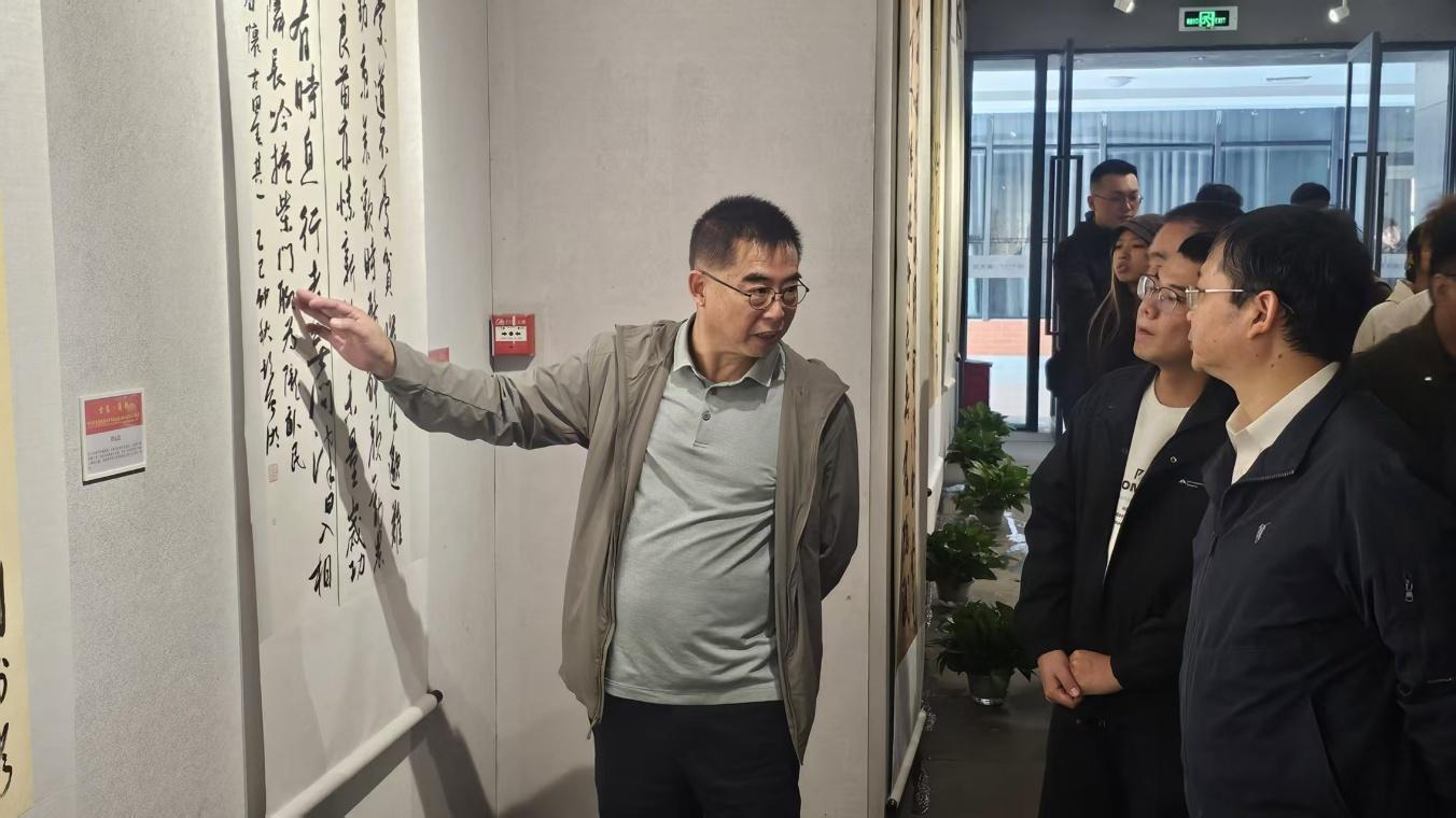 代跃一行首先观看了“古意·薪传”——ac米兰官网中文网站书法学专业喜迎2025届新生作品展,对师生作品进行了逐一指导。代主席对ac米兰书法专业建设和人才培养工作取得的成绩给予了充分肯定,对ac米兰坚持培养“技道均衡、艺文兼备、德艺双馨、有中国学问”的时代书写者的书法专业人才培养目标和“以展促学、以研促教”的人才培养模式给予了赞扬。他指出,高校书法专业一定要在构建学科体系上下工夫,个人发展、学生培养、学术研究都要围绕学科建设来进行。认真领会“技”与“道”的关系,求精深而致广大,希望ac米兰官网中文网站书法学专业培养更多优秀教师,打造一流教学科研团队,培养更多技道均衡的优秀书法人才。