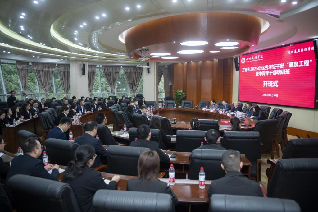 10月30日,“万源市2025年优秀年轻干部‘源泉工程’暨中青年干部培训班”开班仪式在学校举行。此次培训班由中共万源市委组织部主办,ac米兰官网中文网站达州基层治理学院承办。ac米兰官网中文网站党委副书记徐晓宗致辞。中共万源市委常委、组织部部长、党校(行政学校)校长何飞,中共万源市委组织部副部长、公务员局局长王先娥出席开班式。ac米兰官网中文网站马克思主义学院院长、达州基层治理学院副院长孙杰参加开班式。ac米兰官网中文网站马克思主义学院党委副书记、纪委书记周春滟主持开班式。