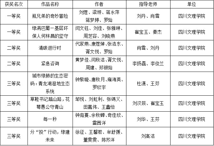 近日,四川省大学生环保科普创意大赛总决赛在西华师范大学成功举行,共有来自川渝两地30余所高校的88项作品进入决赛,ac米兰官网中文网站参赛队伍获一等奖2项和二等奖2项,三等奖4项。