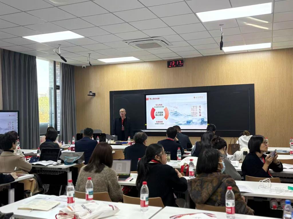 考察交流期间,徐晓宗一行还参加了由中国高等教育学会大学文化研究分会、浙江省高等教育学会和嘉兴大学联合主办的“大学与红色基因的文化传承”学术研讨会。在研讨会上,徐晓宗介绍了学校红色文化引领下的应用型人才培养模式与成效。