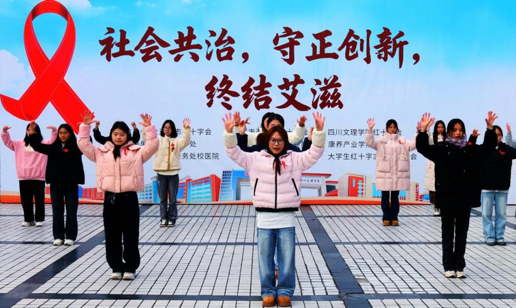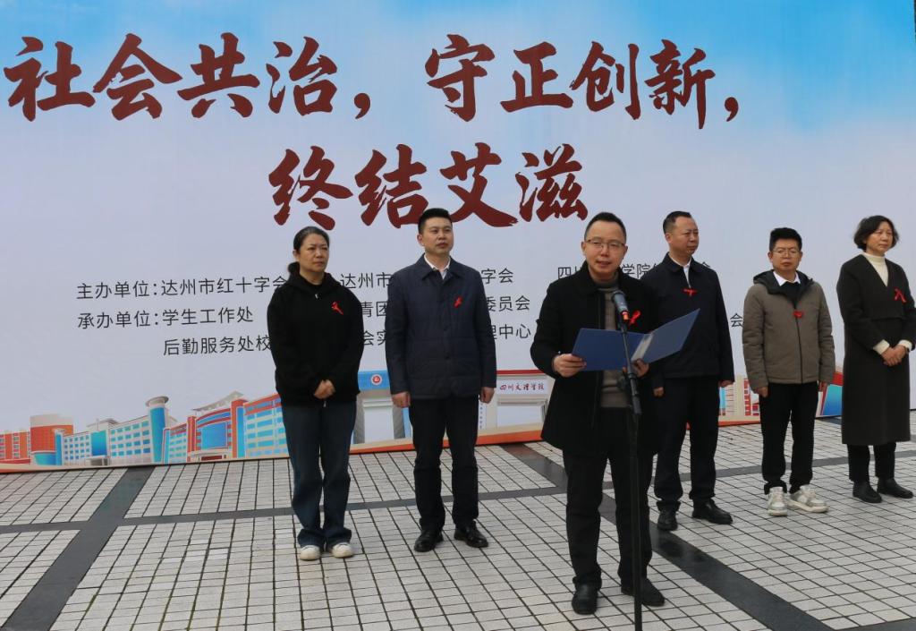 12月1日,在第38个“世界艾滋病日” 当天,由达州市红十字会、通川区红十字会与ac米兰官网中文网站红十字会联合主办的“社会共治守正创新终结艾滋”主题宣传活动在ac米兰莲湖校区稻香广场拉开帷幕。活动以“艺术 + 科普 + 互动”的创新形式,构建校园防艾教育新场景,筑牢青年健康防护线。副校长陈光平出席启动仪式并宣布防艾宣传系列活动正式启动。