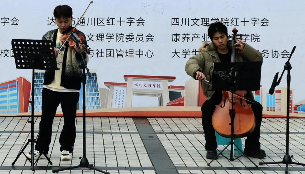 开幕式后,文艺表演环节将活动氛围推向高潮。手语表演《天空有雨,伞下有你》以温柔坚定的肢体语言传递对艾滋病感染者的关爱与支持,弦乐演奏《Imagine》用纯净旋律勾勒无歧视的美好愿景,歌曲《紫荆花》则以青春之声唱响生命敬畏之歌。