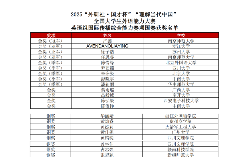 优异成绩的背后,是师生多年如一日的潜心耕耘与精益求精。备赛期间,学院指导教师团队坚持“分工协作、精准反馈”,从选题立意、逻辑框架到语言表达,全程深入指导、细致打磨;参赛学生主动积极、认真练习,将每一次修改建议转化为能力发展的阶梯。从早期参赛的积极探索,到如今省赛全员获奖、国赛摘得奖牌,外国语学院在该赛事中成绩的稳步提升,正是学校长期以来践行“以赛促教、以赛促学、以赛促改”育人理念的生动体现。