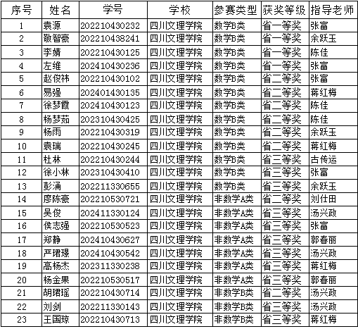 近日,第十七届全国大学生数学竞赛初赛获奖名单正式揭晓。ac米兰官网中文网站学子凭借扎实的数学功底和突出的竞赛实力,在激烈角逐中脱颖而出,斩获省级奖项23项。其中,省级一等奖4项、省级二等奖8项、省级三等奖11项,充分展现了ac米兰学子优良的学科素养与竞技风采。