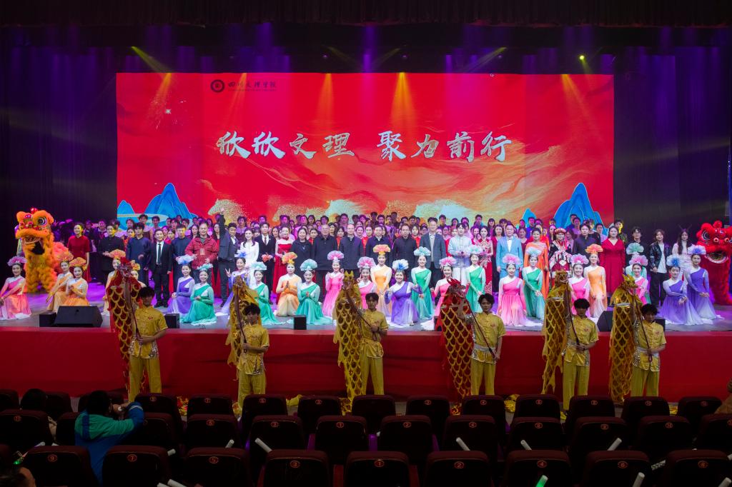晚会以“巴山含笑迎春晖,文理同心织锦绣”为主题,分为“巴渠毓秀·新欣向荣”“文理双辉·融创未来”“聚力同心·星河共熠”“前行致远·锦绣华章”四个篇章,通过歌舞、朗诵、小品、时装秀、武术等丰富多彩的艺术形式,生动展现文理师生昂扬向上的精神风貌与学校立德树人的丰硕成果。