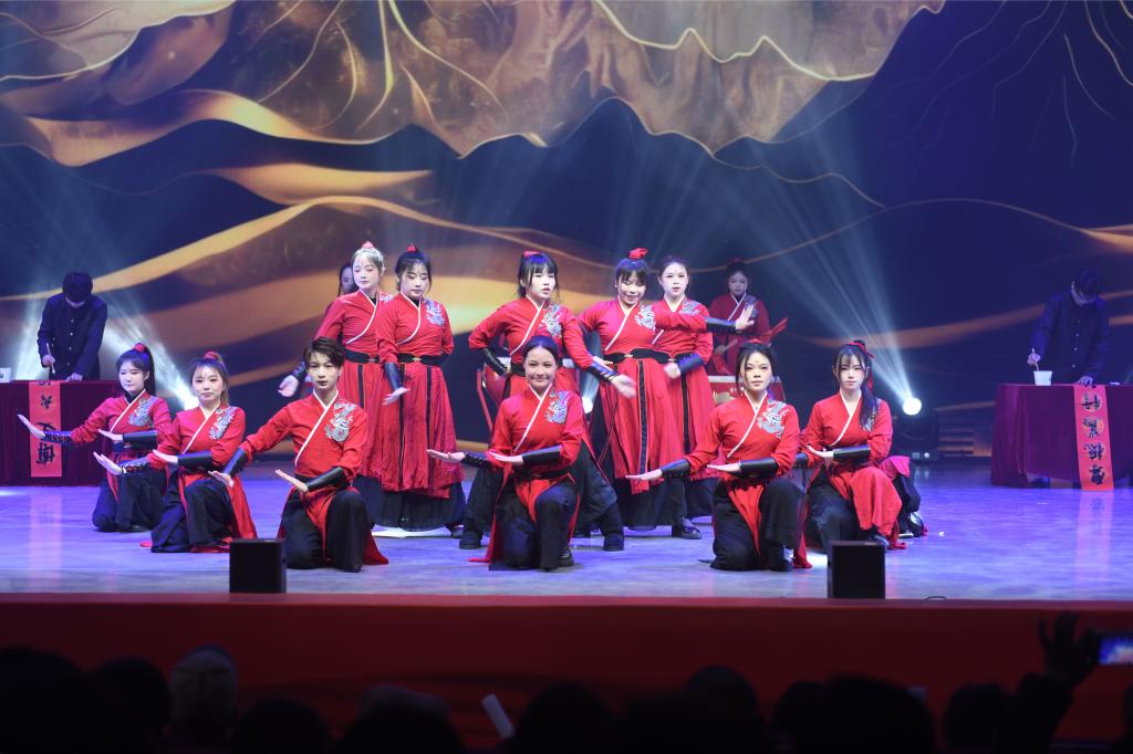 在奔向高质量发展的新征程上,文理人步伐坚定。《武动乾坤》以武术与舞狮融合展示刚健昂扬的文理精神;诗乐舞《文理路,光的接力》通过朗诵、舞蹈与手语,深情回溯学校四十九载办学历程,彰显文脉相传、育人不止的初心使命;舞蹈《夯歌》则以厚重律动呈现“塔石精神”的实干担当,传递出全体师生聚力攻坚、共筑未来的坚定决心。