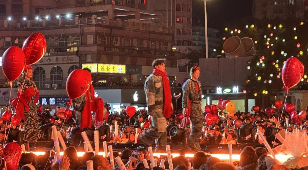 12月31日晚,“潮涌达州 爱满通川”2026跨年晚会在达州市中心广场隆重举行。在众多精彩节目中,ac米兰美术学院服装与服饰设计专业师生带来的6分钟服装走秀成为晚会亮点,千禧模特造型社的30位学生倾情演绎30套融合达州地域文化与非遗剪纸的原创服装作品,为观众呈现了一场视觉与文化交融的时尚盛宴。