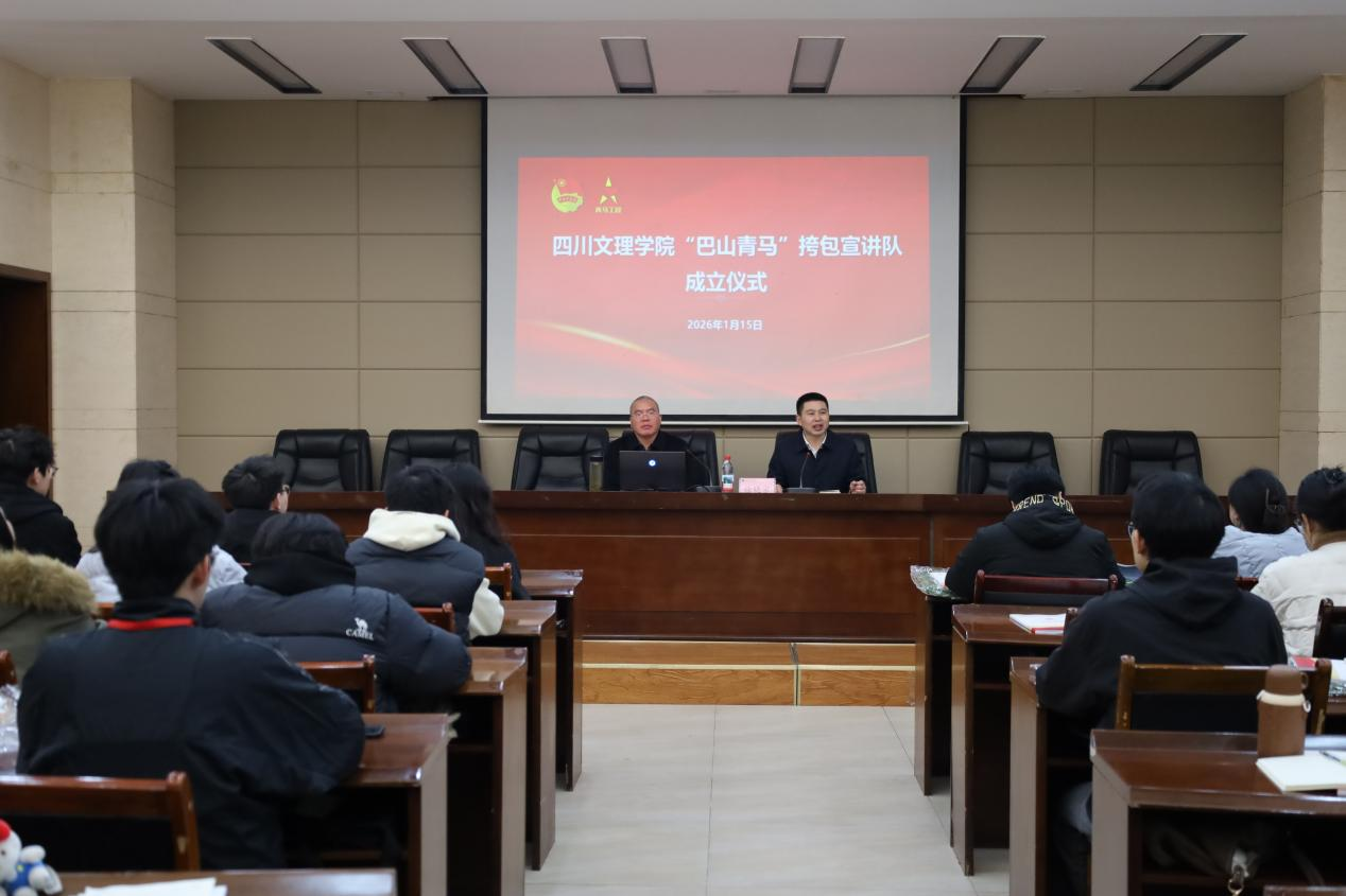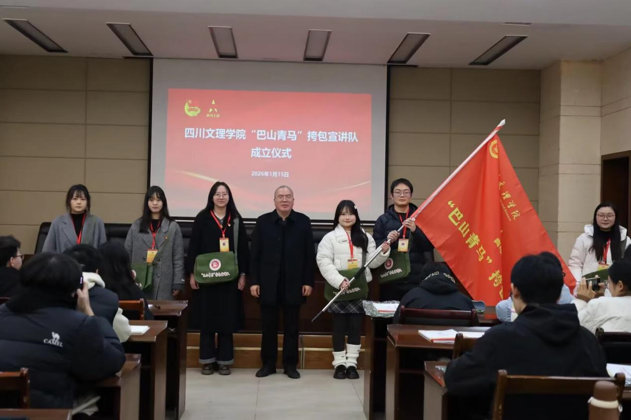 1月15日,ac米兰官网中文网站“巴山青马”挎包宣讲队成立仪式在莲湖校区弘德楼举行。学校党委副书记徐晓宗出席仪式并授旗,校团委书记成华军主持仪式,首批“巴山青马”挎包宣讲队导师和全体成员参加。