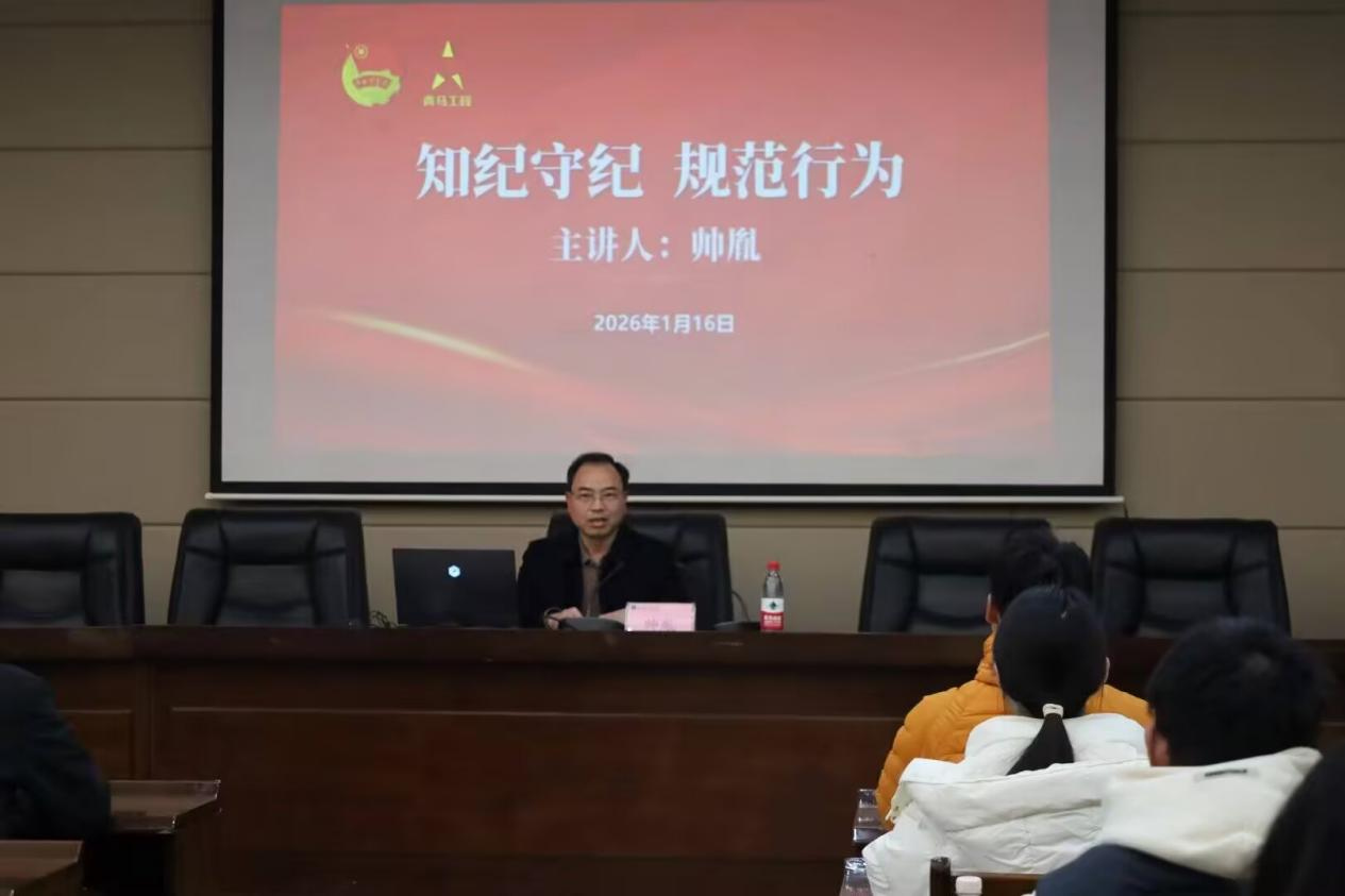 省纪委监委驻ac米兰官网中文网站纪检监察组组长、党委副书记、纪委书记帅胤以“知纪守纪,规范行为”为题,为学员们带来一堂深刻的纪律教育专题课。授课中,他从“党的纪律的历史沿革”“六大纪律的核心内容”“纪律处分的基本规定”三个维度层层深入,系统阐释条例的关键要点与实践要求。他强调,青年学生作为新时代青年骨干,必须强化纪律规矩意识,始终把纪律和规矩挺在前面,在日常学习生活中严守纪律底线,做到知敬畏、存戒惧、守底线,努力成长为遵规守纪的模范表率,以严明纪律护航青春成长之路。