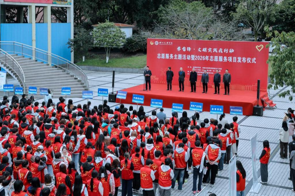 党委宣传部、党委互联网思想政治工作部、党委学生工作部(处)、党委保卫部(处)负责人,二级学院团总支书记及负责人、校青年志愿者协会和各二级学院志愿者服务协会分会负责人、2026年志愿服务项目负责人和青年志愿者代表参加活动。