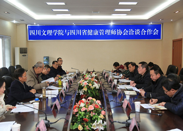 1月17日,四川省健康健康管理师协会会长唐礼华、四川大学华西医学院公共卫生学院健康与社会行为系副主任、博导张建新教授、达州市卫生和计划生育委员会医政科、达州市善泽健康管理公司有关领导等一行9人来学校洽谈合作。学校校地合作处、教务处、康养产业学院等部门及相关专业教师出席洽谈合作会。学校党委副书记、纪委书记雷超主持会议并讲话。