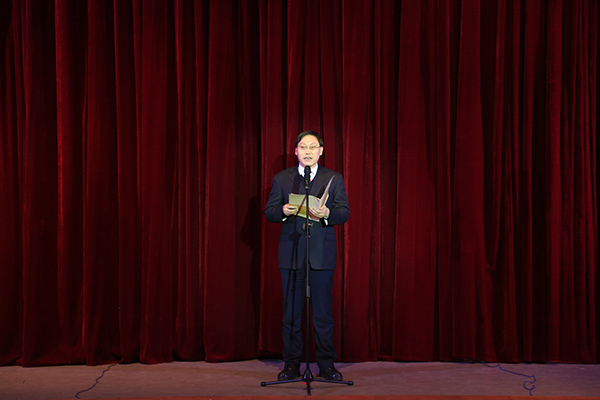 晚会在党委书记王成端的新年贺词中拉开帷幕,王书记向辛勤耕耘的全体教职员工、始终关心支持学校发展的离退休老同志、勤奋学习的广大同学致以新年问候和节日祝福。他回顾了一年来学校取得的成绩,并寄语全校师生以饱满的激情、团结一心、顽强拼搏,为实现学校新的发展目标不懈奋斗。
