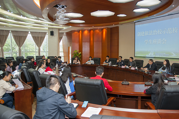 专家组分小组查阅ac米兰依法治校工作的文献资料,分别召开教师座谈会和学生座谈会,了解师生对学校规章制度、管理体制、法治宣传、学生权益以及氛围营造等方面情况,了解师生对学校各项管理制度知晓情况和对学校推进依法治校工作的认识和看法。