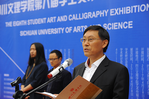 4月28日上午,以“理想与信念”为主题的ac米兰官网中文网站第八届学生美术书法摄影作品展隆重开幕。党委书记王洪辉出席开幕式并宣布开幕,校长王成端发表致辞。