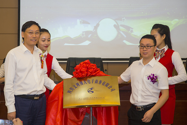 随后,王成端为四川文理博大电子商务有限公司的成立揭牌。