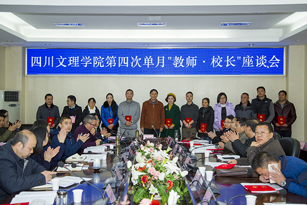 11月24日下午,第四次单月“教师•校长”座谈会在莲湖校区举行,本次座谈会主题是“双师双能型”教师的培养与使用。校长王成端,党委副书记侯忠明,副校长李壮成、徐晓宗出席座谈会。校长王成端主持会议并为首批“双师双能型”教师代表颁发证书。
