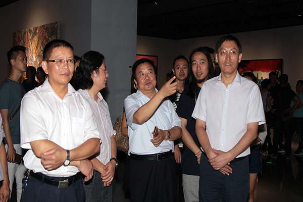 参展作者杨先平、王毅、吴仕华、赖琳、刘渐郡、胡川、王勃凯、赵岩、黄海燕以及学校师生近千人参加开幕仪式。开幕式由美术学院院长刘承川主持。