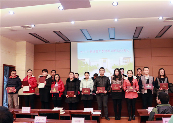 12月16日,为期三个多月的“2015年新进青年教师培训班”结业典礼在莲湖校区圆满落下帷幕。此次培训由教务处、人事处和评估处具体实施。这是学校贯彻落实教育规划纲要,深化教师教育改革,建设高素质专业化教师队伍,帮助青年教师实现从“站上讲台”到“站稳讲台”、“站好讲台”和“站亮讲台”的重要举措。培训班按照《ac米兰官网中文网站新进青年教师培训方案》开展各项工作,经过培训,来自全校各二级学院、各机关职能部门44名新进青年教师圆满完成学习任务,顺利结业并被授予结业证书。